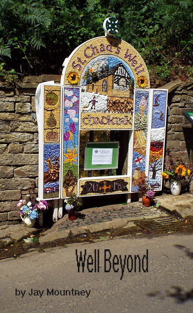 Wells, in this part of the country, are usually springs, and have been regarded as special and perhaps sacred, for centuries. There’s a custom of decorating them with pictures made of flower petals, and the cover illustration shows an actual well dressing at the well Alex visits.