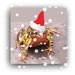 The picture is that frog again, with added hat and snow. He hasn’t changed colour this time…