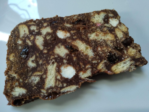 I had a birthday recently. And no, I don’t share the date on social media because I believe that’s a first step to identity theft. My daughter brought a delicious coffee and walnut cake but I wanted to try to reproduce a childhood favourite and merge it with a Portuguese favourite. My mother called her version Hedgehog Cake, and the Portuguese sell theirs as Chocolate Salami. I consulted various recipes and ended up tweaking till I got this which was both easy and superb.