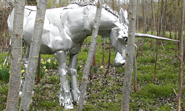 The unicorn is a life-size or at least horse-size sculpture at a forge near Leatherhead in Surrey.
